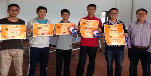 比赛伊始,我院队员便迅速投入到比赛中,个个显得雄姿英发,更加展示了我院学子积极进取、勇往直前的精神。双方队员在场上你争我夺,动作潇洒,每个动作争锋相对,帅气利索。双方争夺异常激烈,比分也渐渐拉平。比赛进行地如火如荼,双方队员都情绪高涨,观众也激情四射,拉拉队员在比赛场外更显气势磅礴,现场气氛十分活跃。最终我院运动员取得了骄人的好成绩。个人小组赛冠军为马院的都超飞同学,亚军是马院的顾栋梁同学,季军是法院的李权财同学。同时团体赛我院也已相当的优势赢得法院取得了冠军,这场同学们的友谊赛在大家的欢呼雀跃中结束。