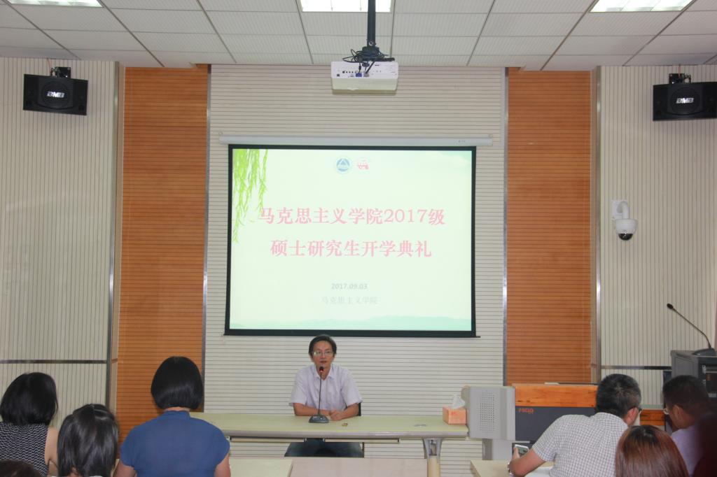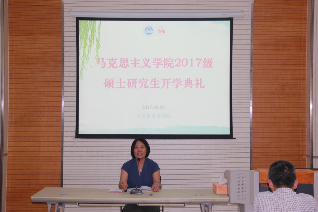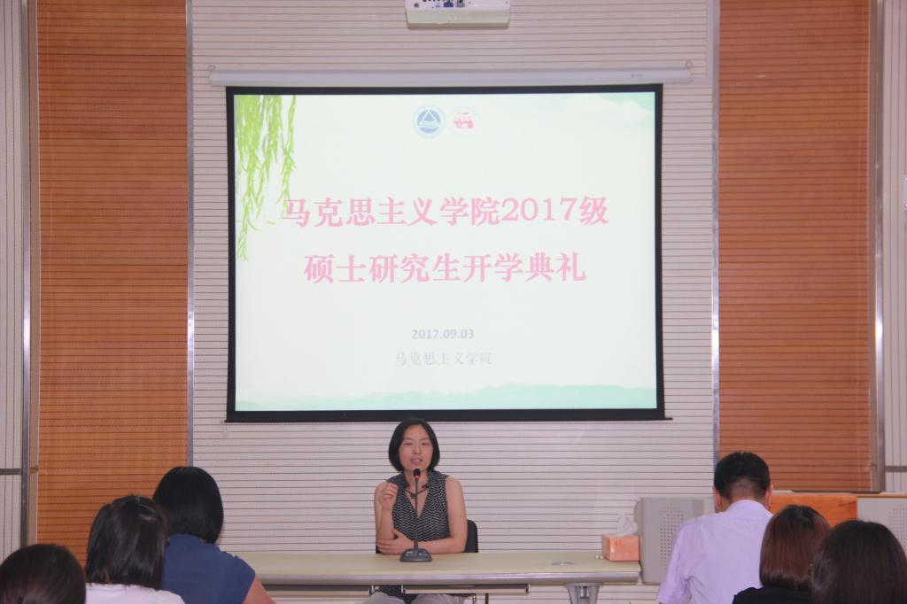 张云霞院长首先发表讲话,激励2017级新生,“大处着眼,小处着手”。要敢于给自己定下目标,同时要从每一件小事做起,严格要求自己。对待学术研究要有一颗热爱的心,更要严谨,同时也要积极参加学院的活动。