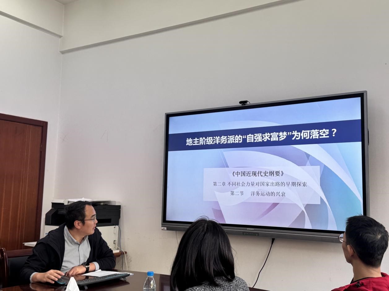 会议的重点环节是江南大学青教赛内容讨论。参加校青教赛的魏云豹老师围绕《中国近代史纲要》中的六个专题中的每个专题的一个重点内容进行了讲课展示,并向其他老师分享了讲课课件。展示结束后,老师们进行了认真评价与讨论。