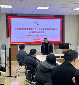 2026年3月2日中午,江南大学马克思主义学院《毛泽东思想和中国特色社会主义理论体系》教研室在马克思主义学院B117会议室召开2026年春季学期第一次集体备课会,承担《毛泽东思想和中国特色社会主义理论体系概论》课程的全体教师参加,会议由教研室主任巩建青老师主持。马克思主义学院院长侯勇教授、马克思主义学院第三党支部书记崔会敏教授等受邀参加。
