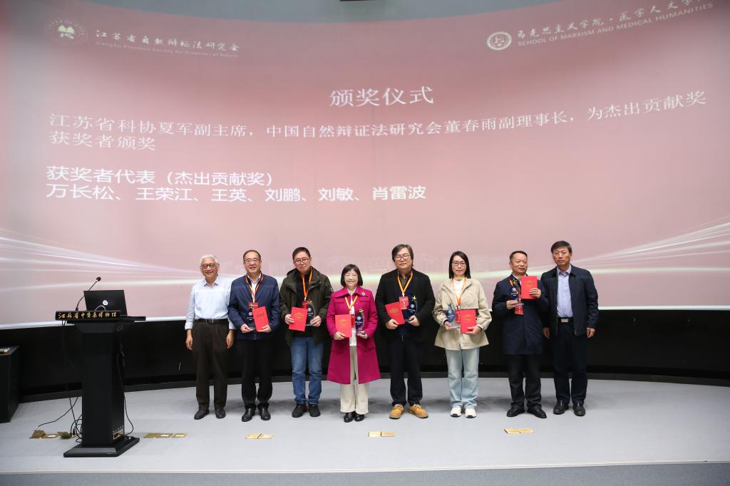 2025年10月25日,江苏省自然辩证法研究会纪念成立40周年暨2025年学术年会在南京中医药大学隆重举行。本次大会的主题为“两个结合视域下的自然辩证法创新与发展”。来自南京大学、东南大学、江南大学、南京财经大学、南京农业大学、江苏省社会科学院等18个院校的专家、学者就自然辩证法与中国具体实际、自然辩证法与中华优秀传统文化、科学技术哲学研究的回顾与展望等话题展开研讨。本次会议表彰了40年来为研究会建设与发展做出突出贡献的集体与个人,我院马克思主义学院的万长松教授、张云霞教授、连冬花副教授荣获“杰出贡献奖”,顾益副教授荣获“优秀青年人才奖”。