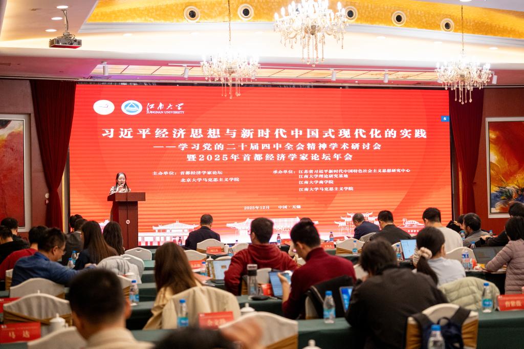 12月20日,习近平经济思想与新时代中国式现代化的实践——学习党的二十届四中全会精神学术研讨会暨2025年首都经济学家论坛年会在江南大学召开。研讨会由首都经济学家论坛、北京大学马克思主义学院主办,江苏省习近平新时代中国特色社会主义思想研究中心江南大学理论研究基地、江南大学商学院、马克思主义学院承办。