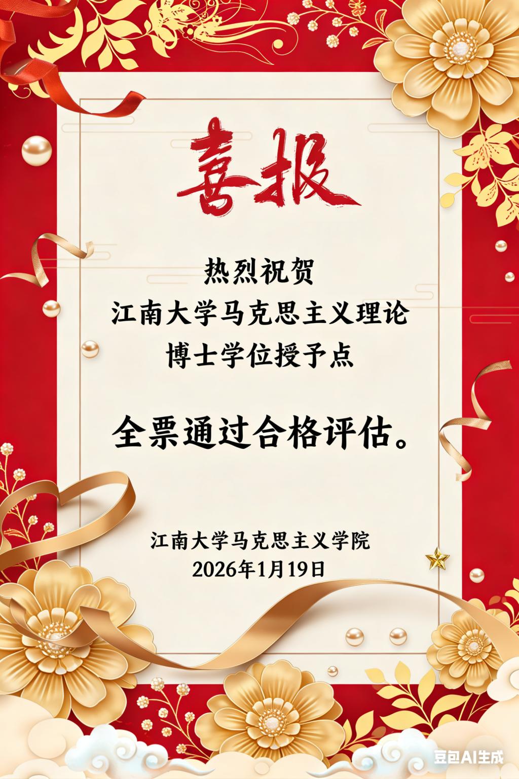 近日,江南大学马克思主义理论博士学位授予点顺利通过学位授权点专项合格评估,且获评议组全票认可,这是学校马克思主义理论学科内涵建设与高质量发展的重要里程碑,标志着学院在人才培养、科学研究、队伍建设等核心领域的综合实力获得权威肯定。