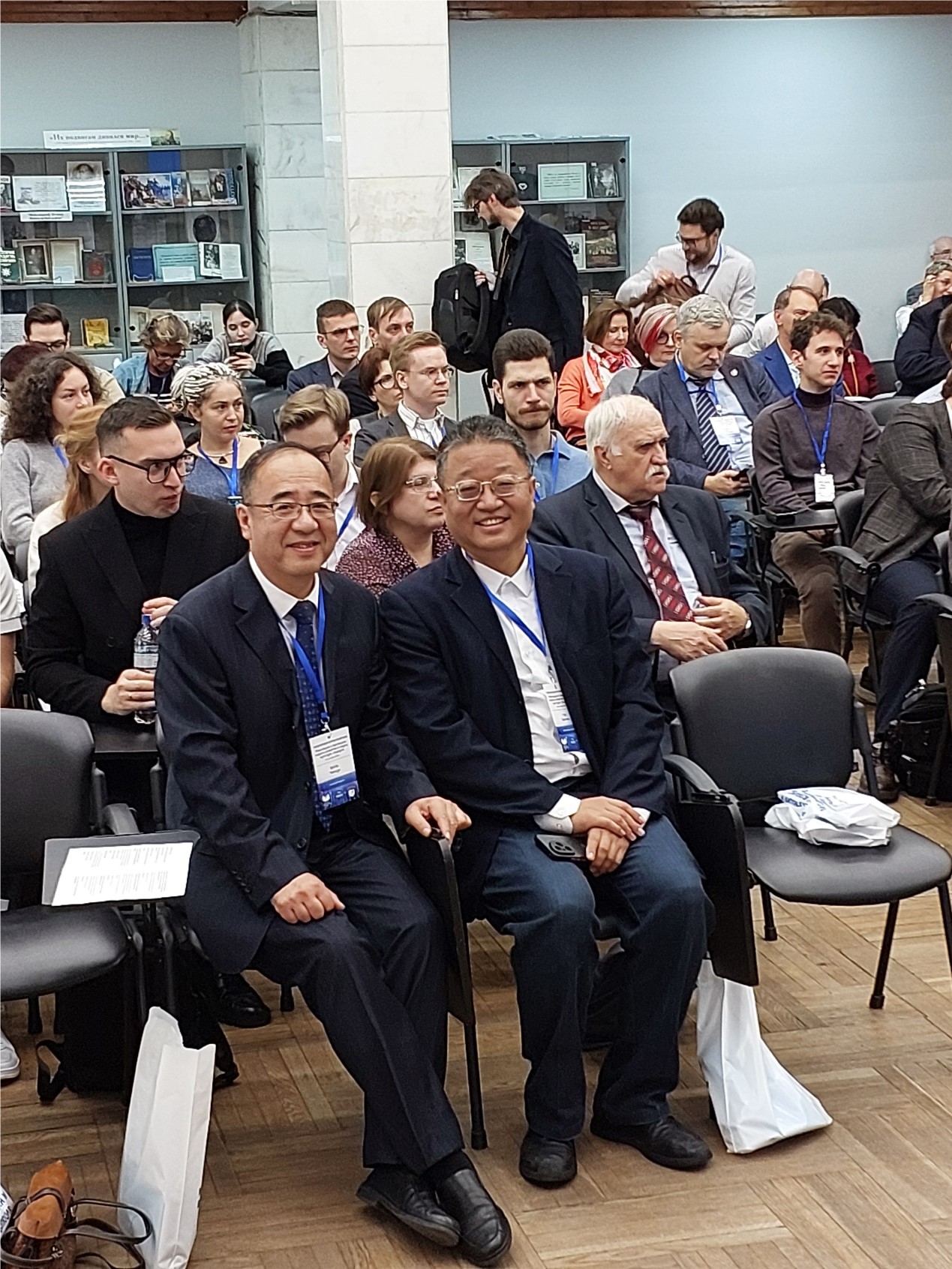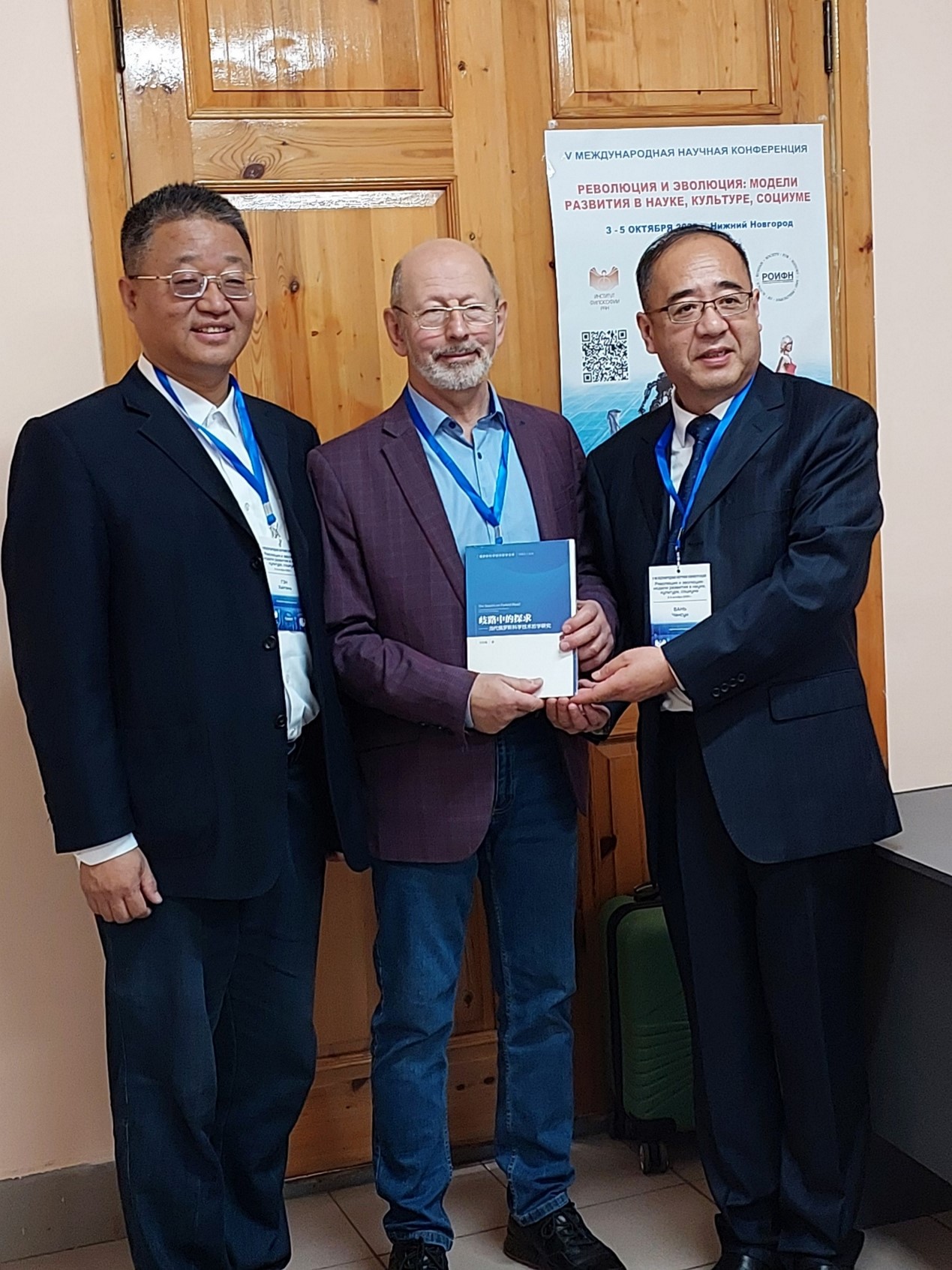 在国立下诺夫哥罗德大学,万长松教授应邀出席主题为“革命与进化:科学、文化、社会中的发展模式”的第五届全俄科学哲学国际会议。出席会议的有俄罗斯科学院伊利亚·卡萨文(Илья Теодорович Касавин)通讯院士、圣彼得堡大学哲学学院科技哲学教研室主任拉达·什波瓦洛娃(Лада Владимировна Шиповалова)教授、下诺夫哥罗德大学物理系主任亚历山大·马雷舍夫(Александр Игоревич Малышев)教授、下诺夫哥罗德大学哲学教研室主任纳杰日达·阿斯塔绍娃(Надежда Дмитриевна Асташова)教授等100多名学者。10月4日14:00—18:00是第五分会场:《苏联与后苏联时期科学哲学史中俄国际研讨会——中俄两国学术传统的交汇点》举办时间。分会场的俄方秘书是圣彼得堡大学哲学学院的叶琳娜·切博塔列娃(Елена Эдуардовна Чеботарева)博士,中方秘书是河北北方学院的耿海天博士。为使俄罗斯学者进一步了解中国学者的工作,万长松教授做了主题报告《俄罗斯科技哲学的范式转换与发展趋势》。报告引起了与会者强烈反响,国立莫斯科师范大学哲学系主任伊莉娜·格利弗佐娃(Ирина Николаевна Грифцова)、国立乌里扬诺夫斯基大学哲学系主任瓦列京·巴热诺夫(ВалентинАлександровичБажанов)等向万长松教授提出了一系列问题和质疑,万教授都进行了详细解答并获得了俄罗斯学者的认可。会议期间,大会主席卡萨文通讯院士还在百忙之中接见了万长松教授,双方简短地交流了意见,万教授向卡萨文通讯院士赠送了礼物和自己的著作。不久前万教授在卡萨文主编的俄罗斯哲学权威期刊《认识论与科学哲学》刚刚发表了论文,为此向卡萨文主编表示衷心感谢。